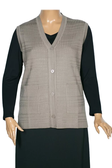 Hesna Kadın Nazan Büyük Beden Triko Düğmeli Cepli Kum Beji Yelek