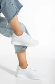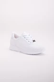- İnce Taban Bağlı Cilt Beyaz Kadın Spor Ayakkabı