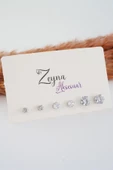 Kadın 3 Boy 6'lı Oval Zirkon Taşlı Küpe Set