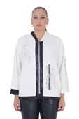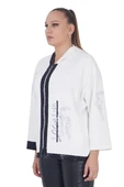 Kadın Büyük Beden Beyaz Taşlı Şık Kapüşonlu Bluz