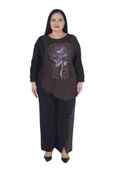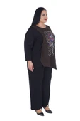 Ana Sayfa Giyim & Aksesuar Kadın Giyim Takım Kadın Büyük Beden İnci Detaylı Gül Baskılı Alt Üst İkili Takım