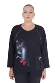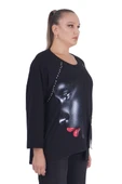 Kadın Büyük Beden Kız Figürlü Uzun Kol Asimetrik Bluz