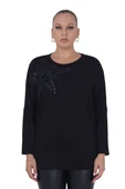 Kadın Büyük Beden Siyah Çiçek Motifli Şık Bluz