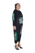 Kadın Büyük Beden Sloganlı Alt Üst İkili Takım
