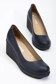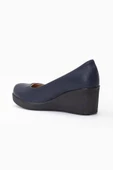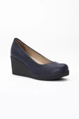 - Kadın Dolgu Topuklu Ayakkabı Lacivert Yüzüdüz Cilt