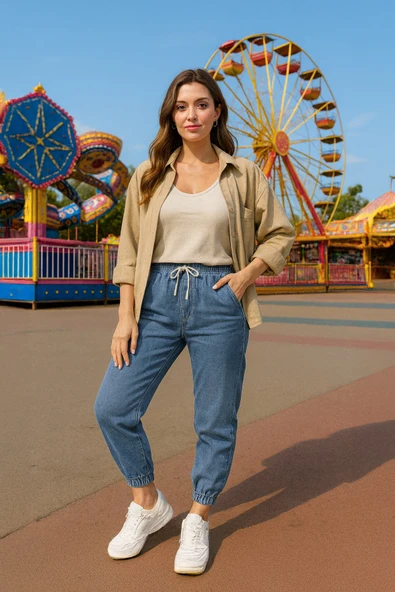 Kadın Lastikli Jogger Pantolon Koyu Mavi