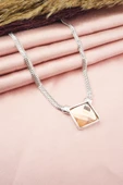 Ana Sayfa Takı & Gözlük & Saat Takı Kadın Takı Kolye Kadın Özel Tasarım Kare Model Kesme Taşlı Model Yılan Zincirli Kolye