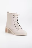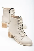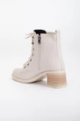- Kadın Topuklu Bot Bej Bağlı Suni Deri