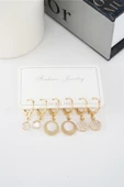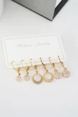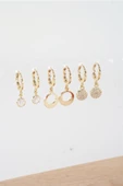 Kadın Zirkon Taşlı Sallantılı Oval Figürlü Klipsli 6'lı Küpe Seti