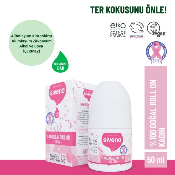 Siveno %100 Doğal Roll-On Kadın Deodorant Ter Kokusu Önleyici Bitkisel Leke Bırakmayan Vegan 50 ml