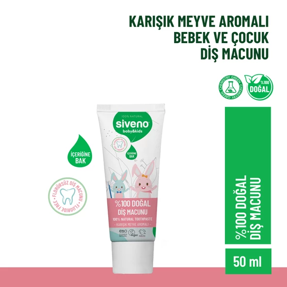 Siveno %100 Doğal Florürsüz Karışık Meyve Aromalı Bebek ve Çocuk İçin Diş Macunu 50 ml