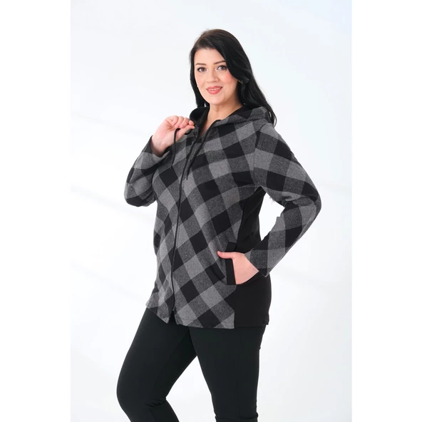 - Kapüşonlu Büyük Beden Kadın Oduncu Gömlek Ekose