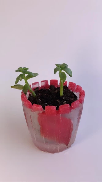 - Kırmızı Renk Kum Ve Kurutulmuş Yaprak Süslemeli Tırtıklı Epoksi Sukulent Saksı El Yapımı Hediyelik