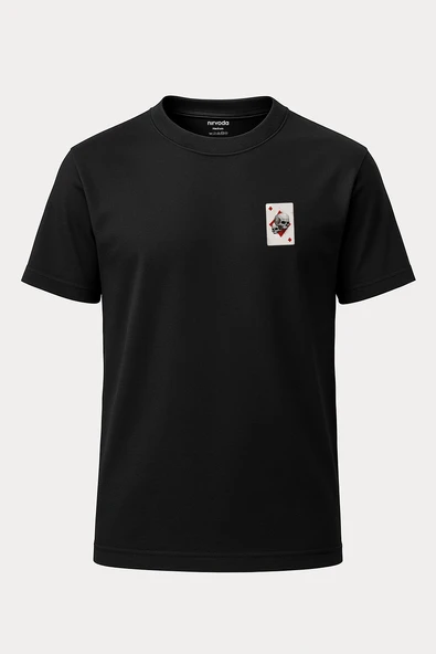 Kurukafa İskambil Baskılı Loose Fit Bisiklet Yaka Unisex Tişört