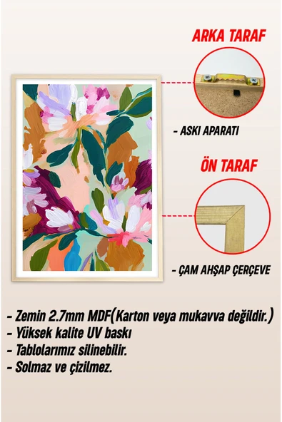 kutuTR Ahşap Çerçeveli Mdf Tablo Seti Matisse, Bohem, Kusama Salon Ve Oturma Odası İçin ÇT3085