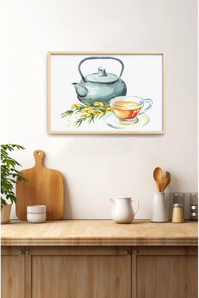 kutuTR Ahşap Çerçeveli Mdf Tek Tablo Mutfak Dekoru Demlik 1014 - 1