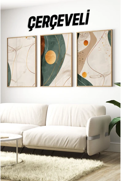 kutuTR Dekorize Mdf Tablo Seti 3 Parça 3 Mm - Çerçeveli Salon Oturma Odası Için Duvar Dekoru 3026