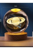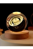- Satürn Gezegen Ahşap Tabanlı Cam Küre Dekoratif Hediyelik Aydınlatma Işıklı Küre