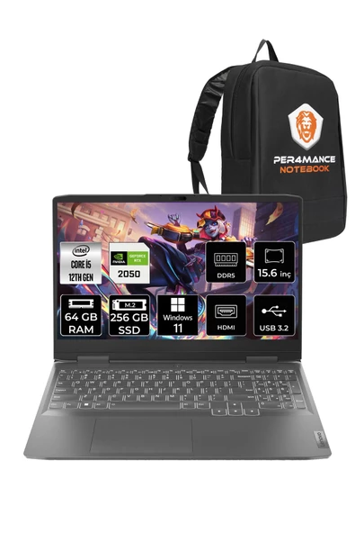 LENOVO LOQ i5-12450HX 64GB 256GB SSD RTX2050/4GB 15.6" FHD 144Hz W11P 82XV010FTR & PER4 ÇANTA