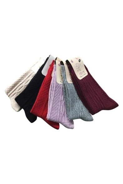 6'lı Kadın Yün Çorap Lambswool Kuzu Yünü Pamuk Karışımı Sayesinde Rahatsızlık Vermez