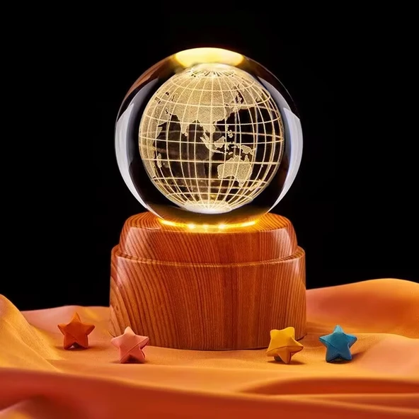 Toptan Gezegen Dünya Tasarımlı Usb'li Dönen Cam Küre