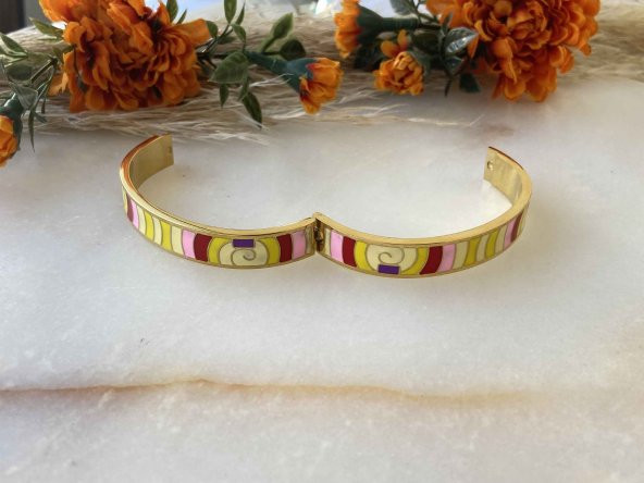 Aksesuar Çarşısı Çelik Charm Kelepçe Rengarenk Mineli Gold