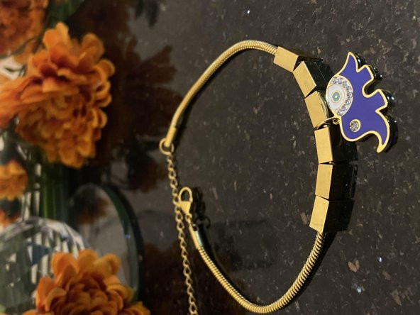 Aksesuar Çarşısı Kare Tasarımlı Nazar Boncuk Su Yolu Bileklik Gold