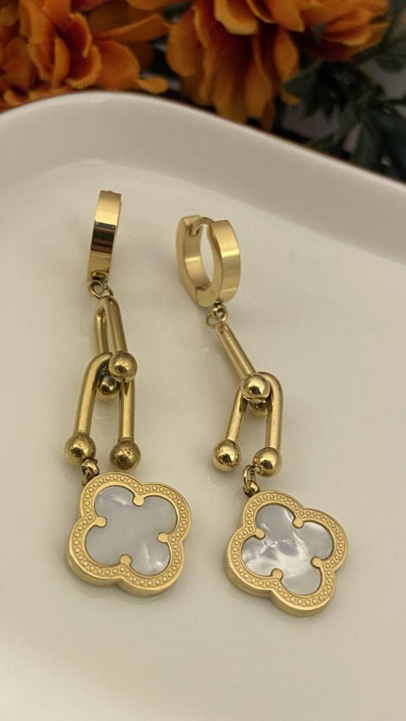 Aksesuar Çarşısı Marka Model Beyaz Sedefli Yonca Küpe