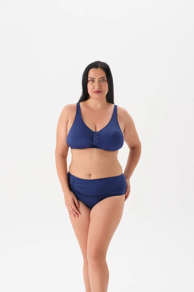 Büyük Beden Balensiz Toparlayıcı Lacivert Taşlı Bikini Takım