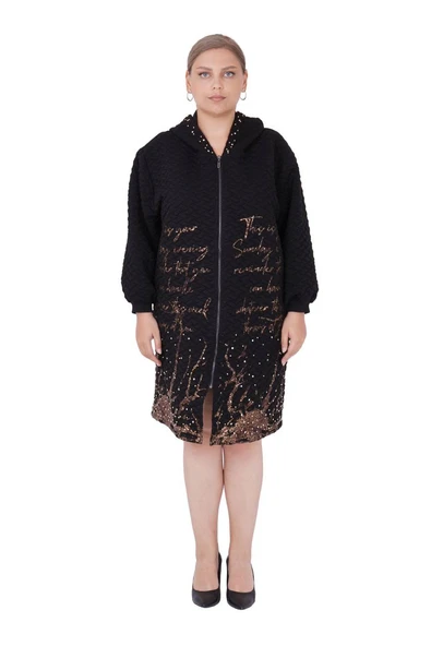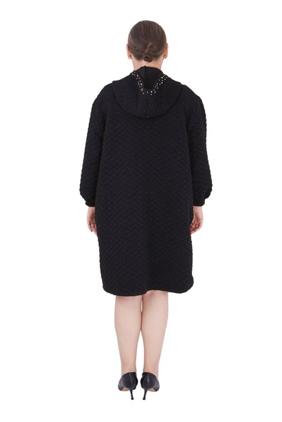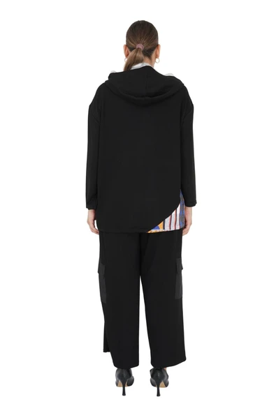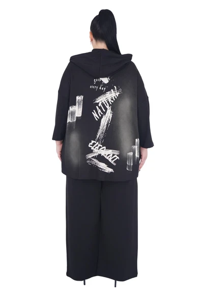 Kadın Büyük Beden Kapüşonlu Uzun Kollu Siyah Alt Üst İkili Takım