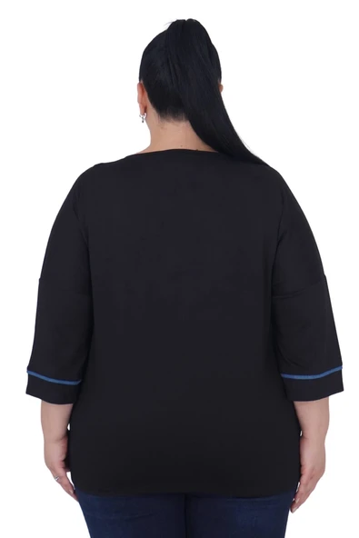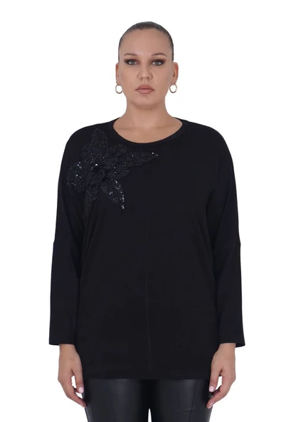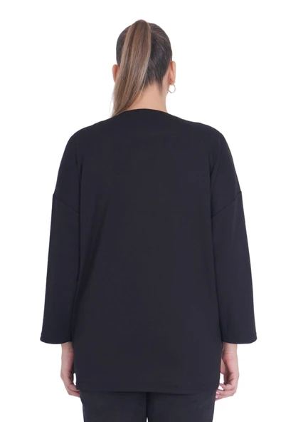 Kadın Büyük Beden Siyah Oversize Şık Uzun Kollu Bluz