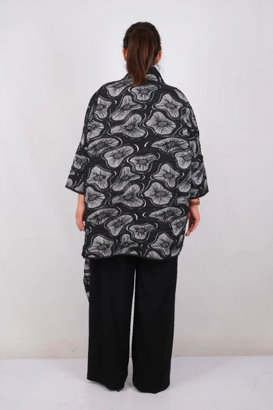 Asimetrik Kesim Çiçek Motifli Oversize Büyük Beden Rüzgarlık İnce Ceket