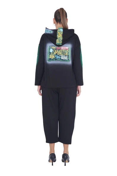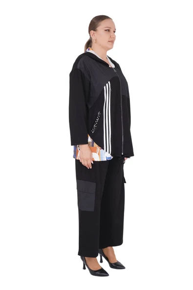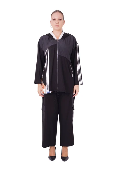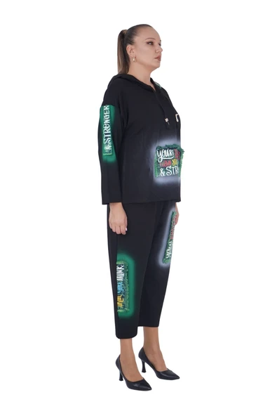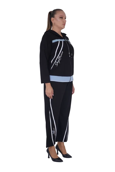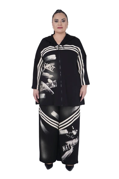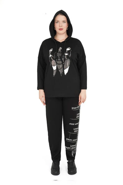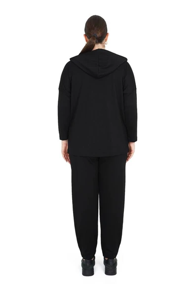 Kadın Büyük Beden Siyah Alt Üst İkili Kapüşonlu Takım