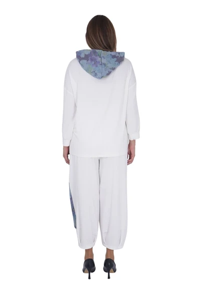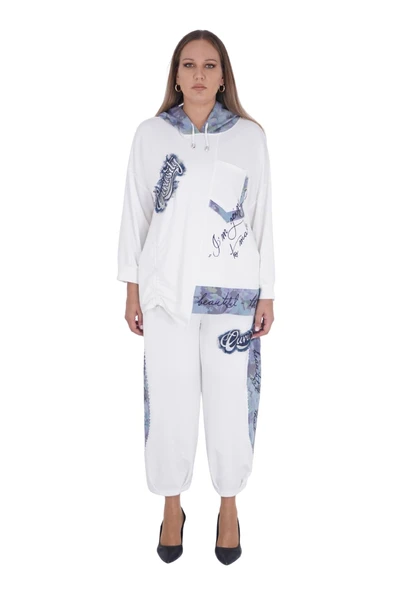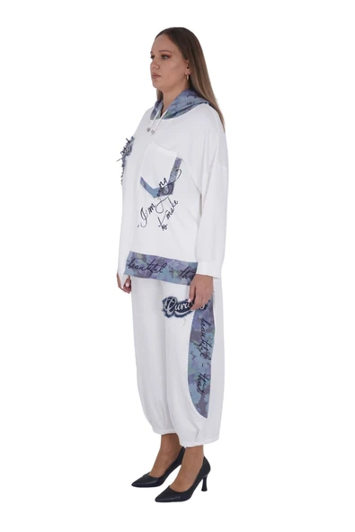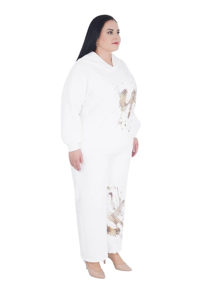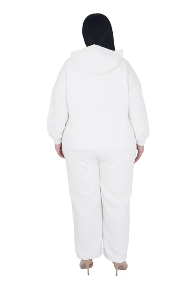 Kadın Büyük Beden Beyaz Kapüşonlu Alt Üst İkili Takım