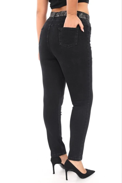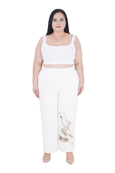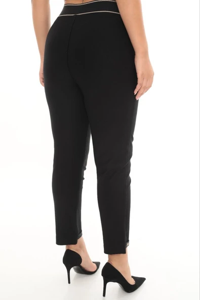 Büyük Beden Kadın Dar Paça Extra Battal Paçası Taşlı Pantolon