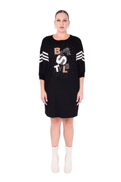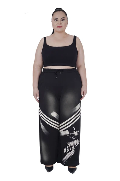 Kadın Büyük Beden Sloganlı Alt Üst İkili Takım