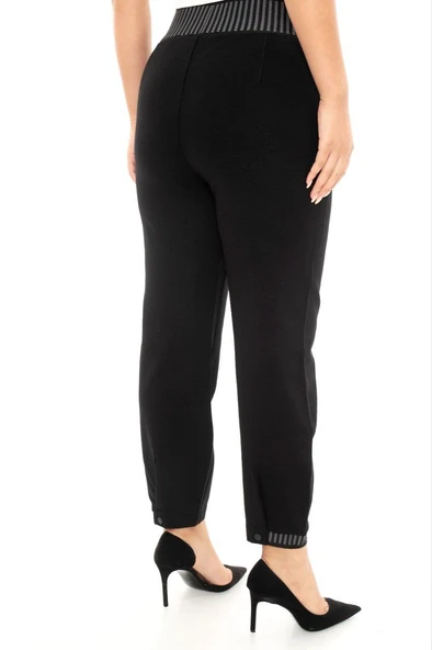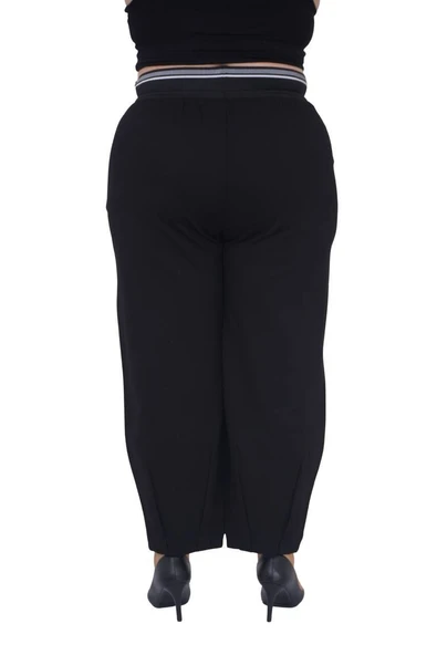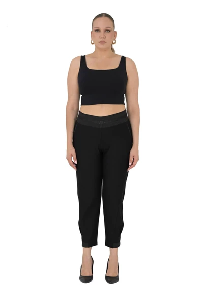 Büyük Beden Kadın Dar Paça Deri Şeritli Beli Lastikli Ekstra Battal Toparlayıcı Pantolon
