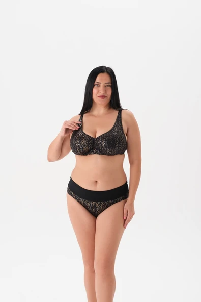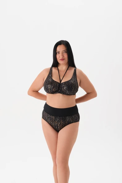 Büyük Beden Balenli Parlak Leopar Toparlayıcı Bikini Takım