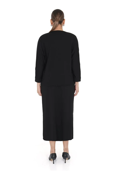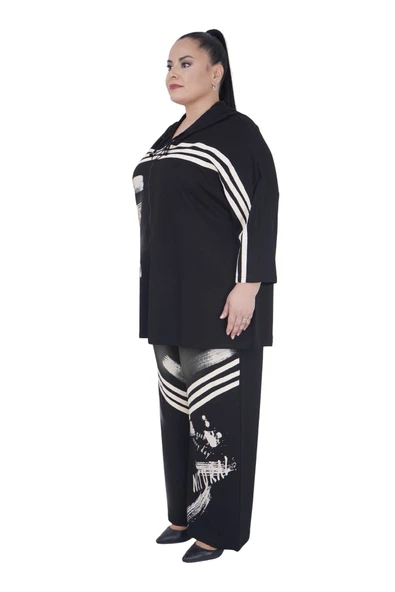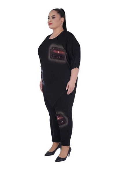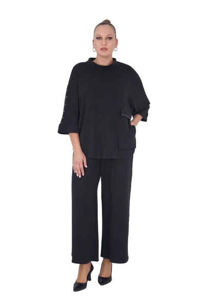 Kadın Büyük Beden Siyah Şık Alt Üst İkili Takım