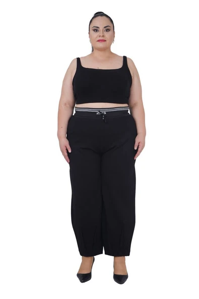 Büyük Beden Kadın Boru Paça Beli Lastikli Spor Şık Extra Battal Jogger Pantolon