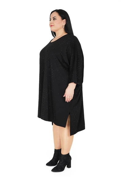 Kadın Büyük Beden Siyah Alt Üst Yıldız Nakışlı İkili Takım