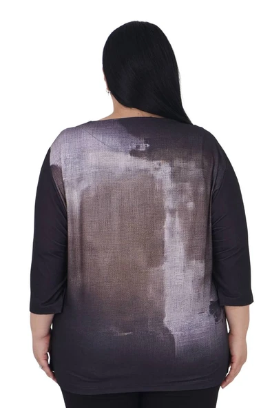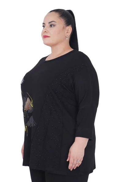 Büyük Beden Tüğlü Taş Detaylı Oversize Bluz