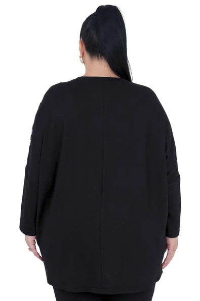 Kadın Büyük Beden Siyah Oversize Şık Uzun Kollu Bluz