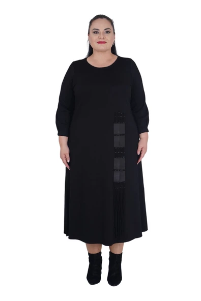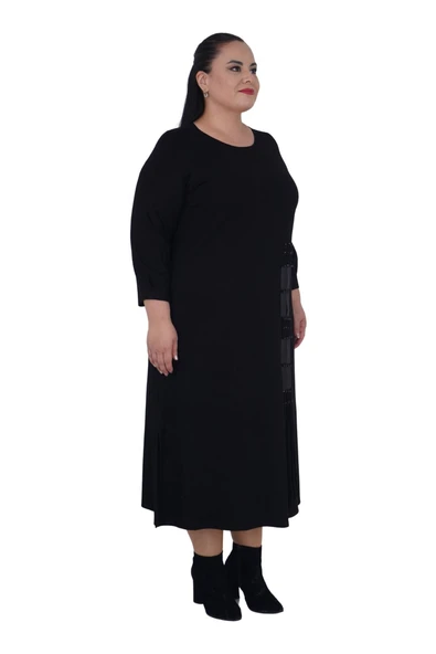 Kadın Büyük Beden Salaş Şık Siyah Uzun Elbise