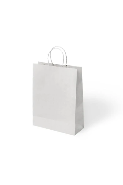 BÜKÜM SAPLI KAĞIT ÇANTA BEYAZ 18X8X24 12 Lİ