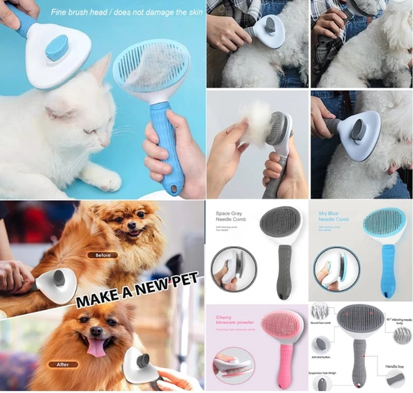 Otomatik Temizlenen Evcil Hayvan Tarağı (Gri)