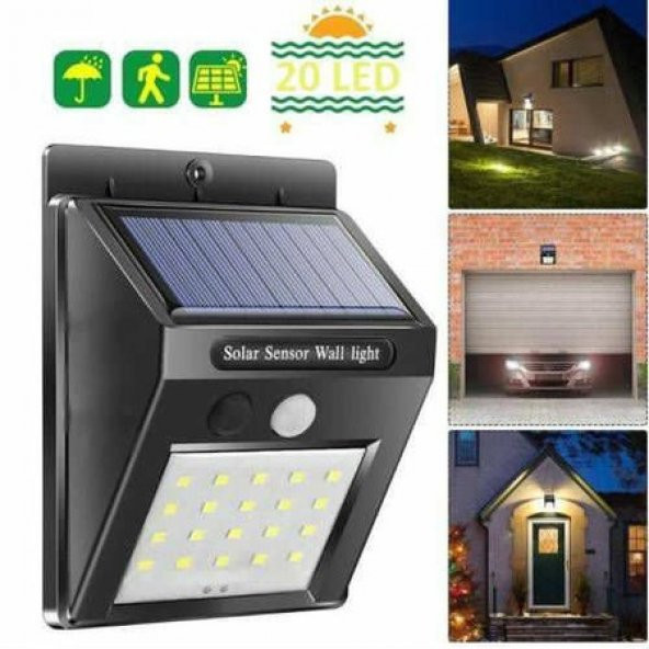 Hareket Sensörlü PIR 20 LED Solar Enerji Su Geçirmez Duvar Lamba