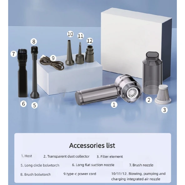 16000pa Güçlü Portatif 3 Kademeli Tabilir Vakumlu Kablosuz Üflemeli Mini Araç Süpürgesi