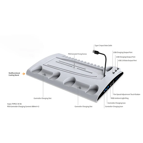 Ps5 Fanlı Şarj Standı- Rgb Işıklı + Soğutma+Kulaklık Tutucu