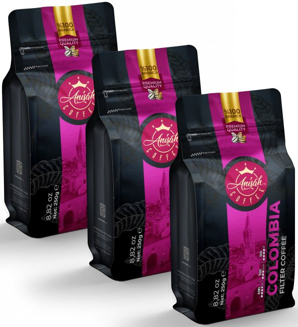 Anisah Coffee Kolombiya Filtre Kahve 3 x 250 Gram - 3'lü Paket